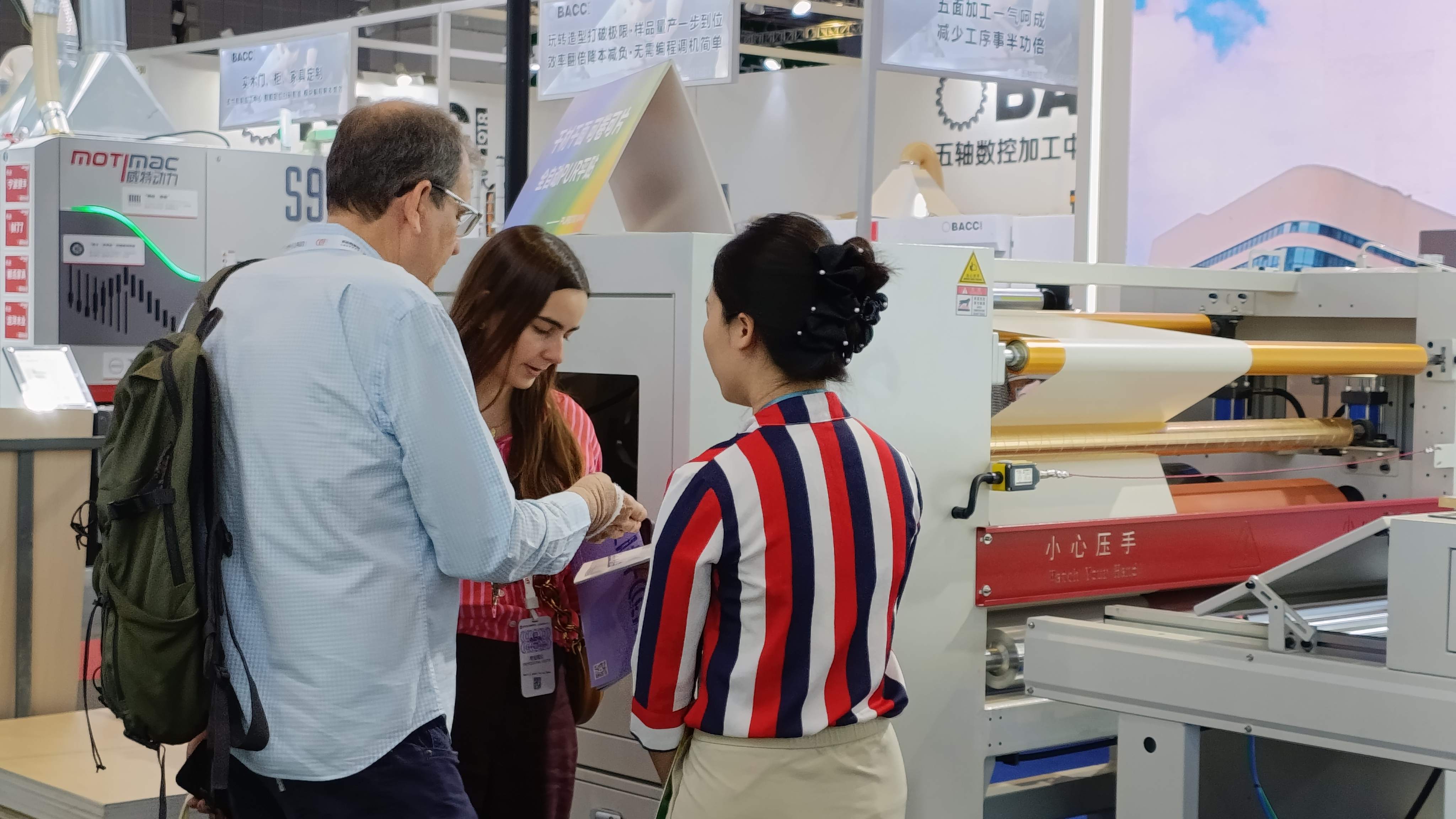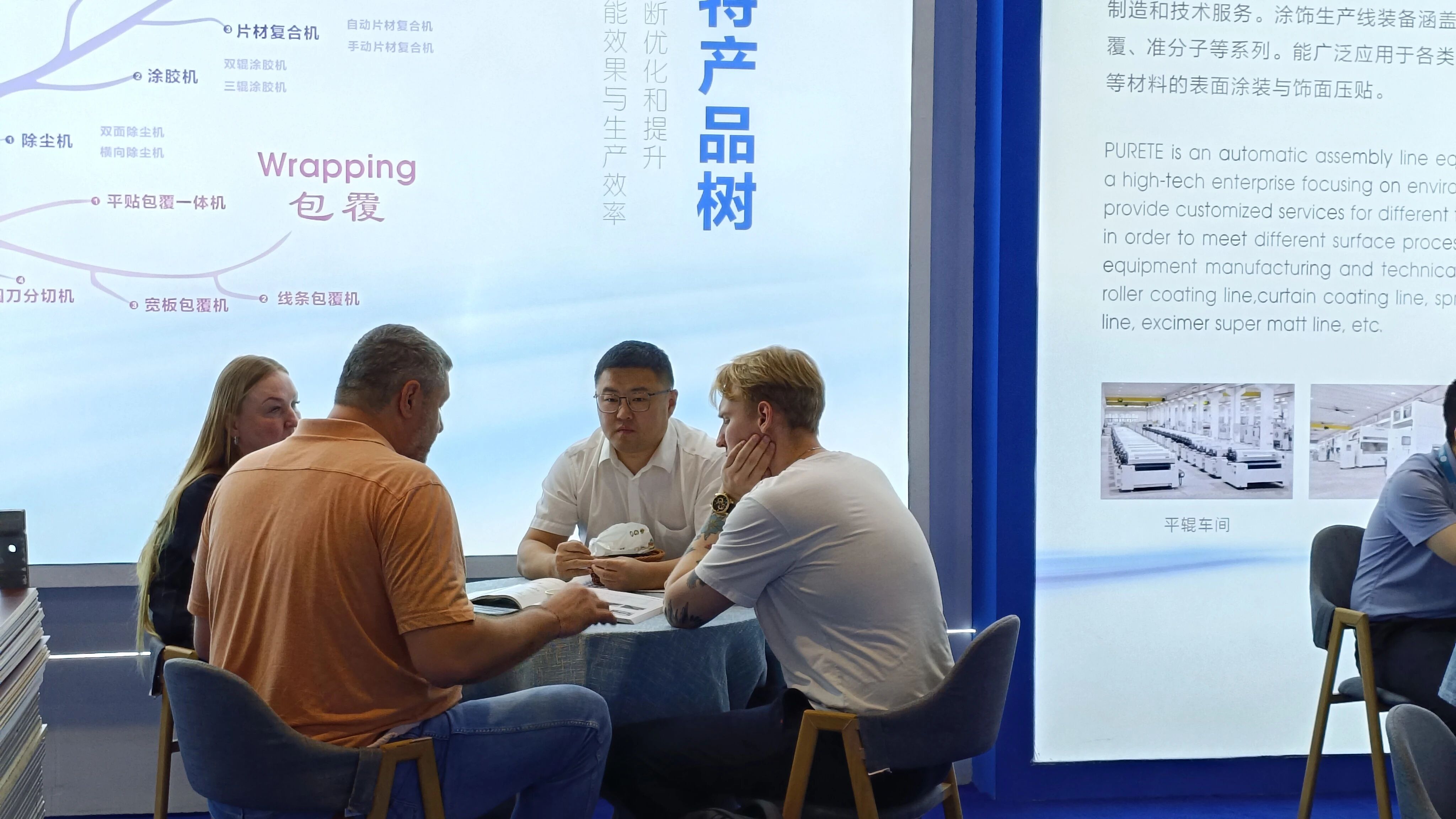 在本次展會上,瀚秋股份的往復(fù)噴漆機與 PUR 平貼線作為 “涂飾一體化解決方案” 的核心設(shè)備,贏得了客戶的廣泛好評。