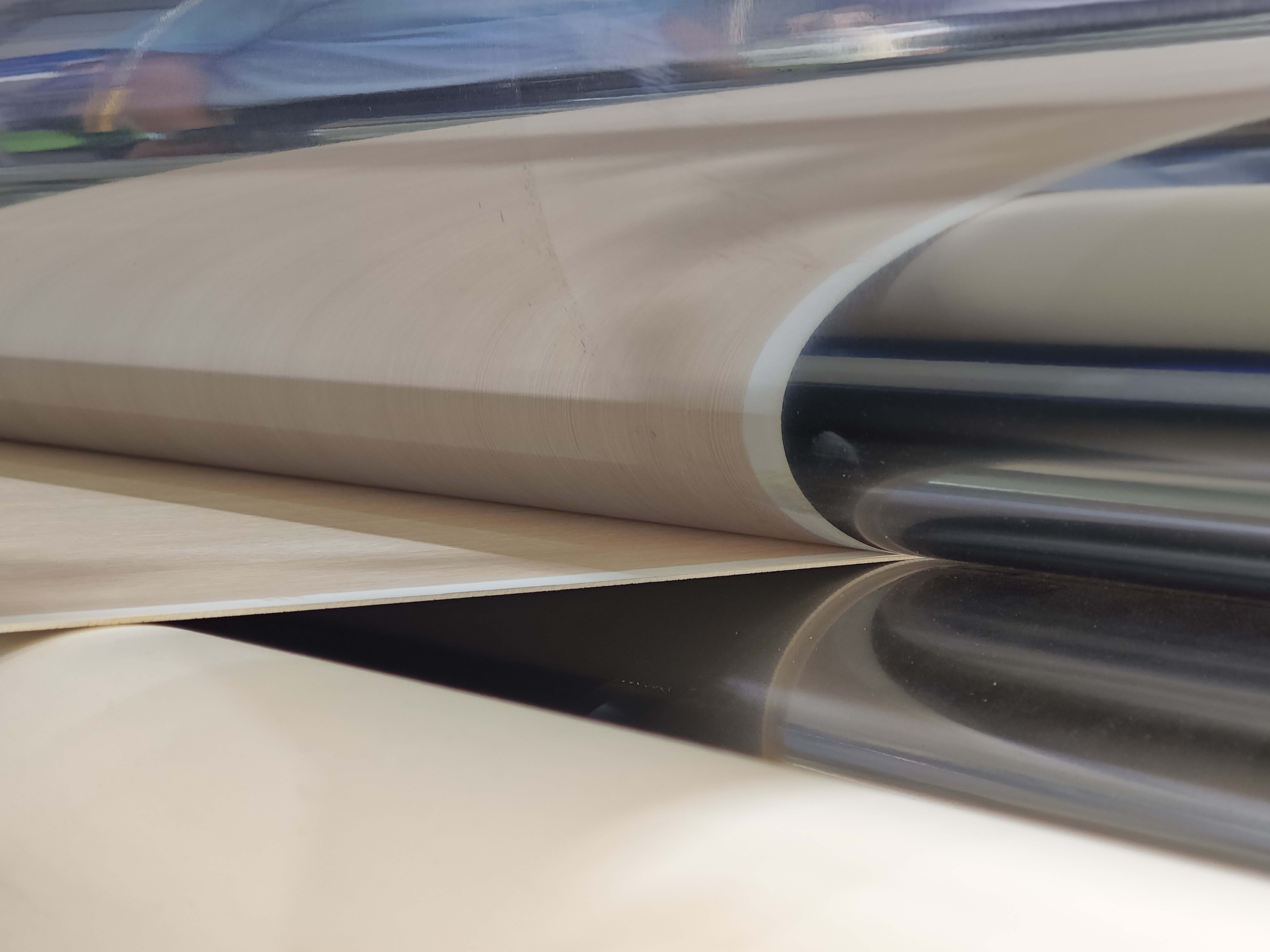 涂飾仿真同步壓紋生產(chǎn)線】: SPC地板、PET地板可以采用設(shè)備實(shí)現(xiàn)精準(zhǔn)定位,較傳統(tǒng)工藝提升5倍,圖案和紋理的天然仿真還原度達(dá)90%以上,以極低的成本,復(fù)刻實(shí)木地板的質(zhì)感與紋理,產(chǎn)品品質(zhì)不變,減少設(shè)備的投入,快速占領(lǐng)市場(chǎng)。